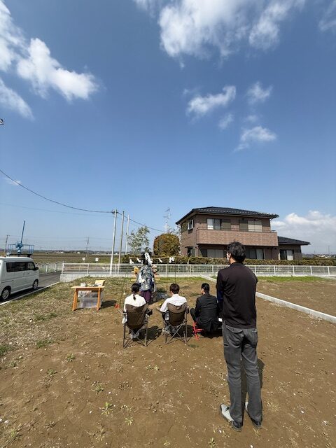 当日は澄み渡る青空のもと、土地の神様へ工事の安全と無事完成を祈願。