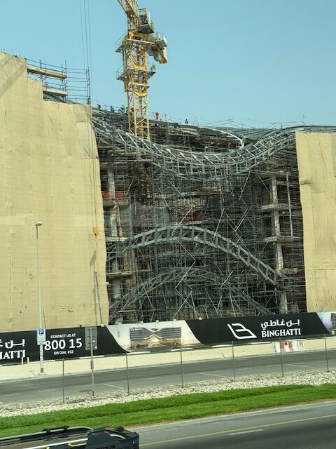 下に完成パースの絵がありますが、曲線を出すための鉄骨工事ハンパない。