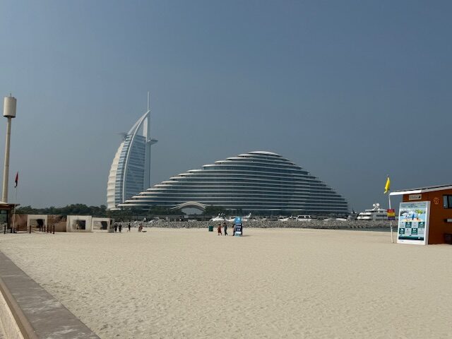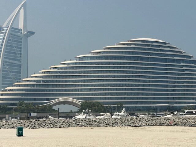 手前の階段状になっている建物は、ジュメイラ・ビーチ・ホテル
