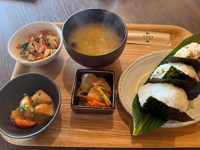 お米、野菜は地元の農家さんのものを使っており、おむすびも美味しかったし、