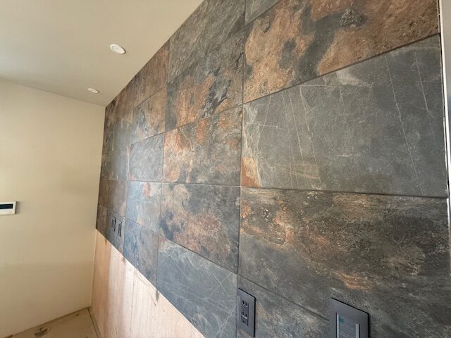 やわらかな質感と自然な色むらが特徴の大谷石は、古くから建築素材として親しまれてきた素材。今回の空間では、その落ち着いた風合いを活かしながら、現代の住まいにもなじむタイル仕上げで取り入れています。