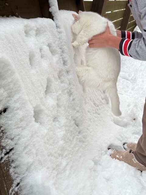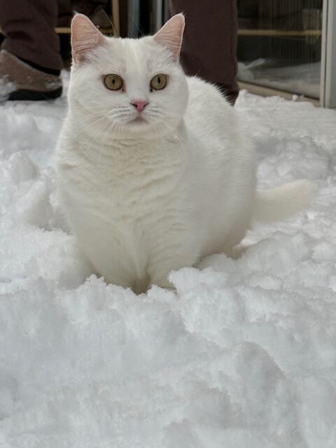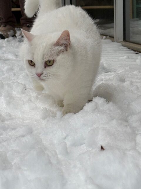 真っ白な雪と真っ白な猫、冬ならではの特別な時間になりました。