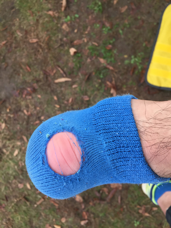 途中では靴下が切れて、踵が擦れて、びっこ引きながら1時間34分台でゴールでした。