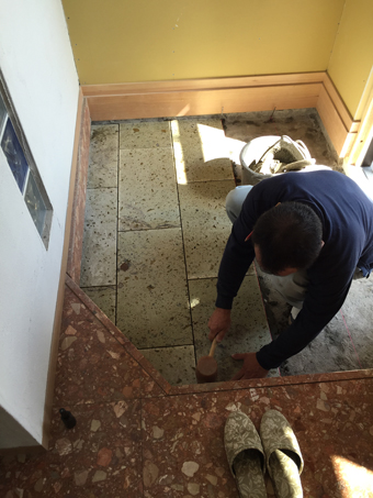 私達スタッフ用の玄関床部分は、自分が先日取りに行ってきた石を張っています。