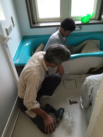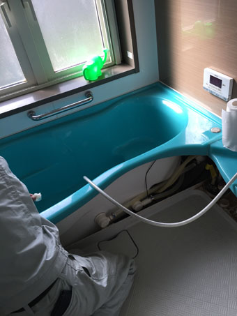 ウネウネしている浴槽のため時間が掛かりましたが、4時間ほどの作業で取り付け完了。