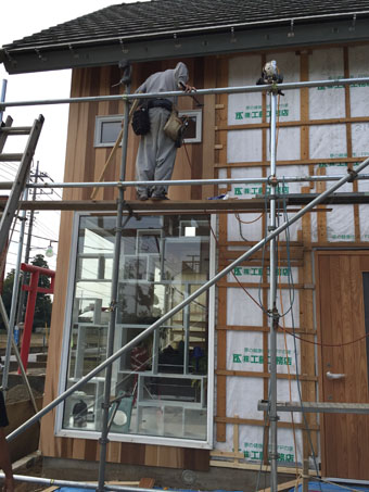 事務所リニューアルで使う外壁の木部塗装のお手伝い。