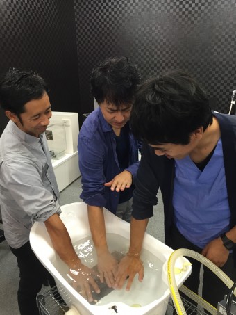 平田タイルの後は、サイエンス社のマイクロバブル体験です。