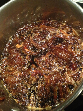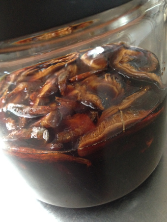 2日寝かした醤油ダシにかつお節をいれて煮詰めて、濾して完成。