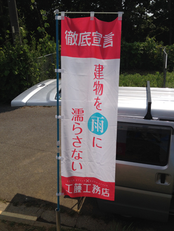 建物を雨に濡らさないのぼりは、上棟時の構造材をブルーシートで囲う作業の事です。