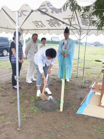 地鎮祭が終わり、施主様とラーメンの話で談笑。