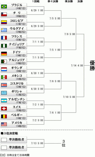 ブラジル・コロンビア・フランス・ナイジェリア・ドイツ・