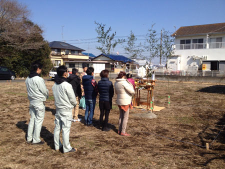 本日は3月末着工の山武市の現場の地鎮祭に参加。