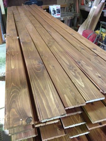 午前中は作業場で若葉区中野町の現場の杉板オイル塗り