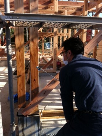 先日お話しましたホウ酸防蟻処理を初めて現場にて行いました。