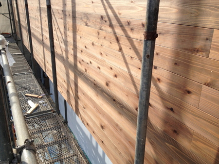 稲毛の現場の外壁張りです。