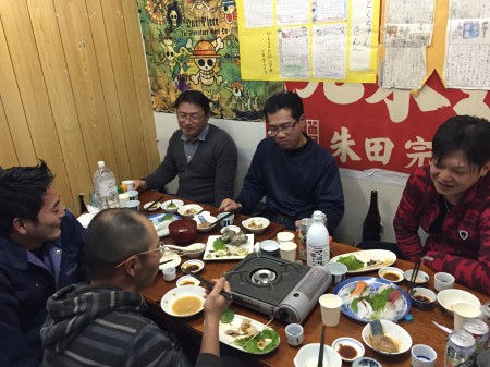 今回はあんこう鍋をメインに刺し身盛り合わせ、揚げ物なども作ってくれて大満足!