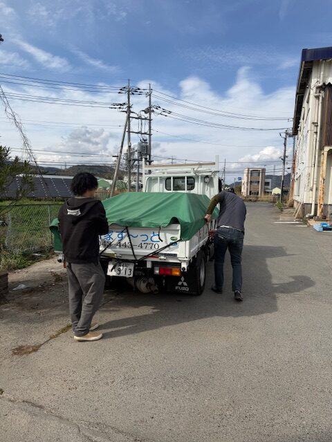 選んだタイルはそのまま軽トラックへ積み込み。